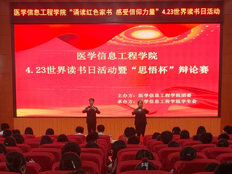 4月23日晚,医学信息工程学院在黄金校区行政楼多功能报告厅举办4.23世界读书日活动暨“思悟杯”辩论赛决赛,该院300余名学生参加。