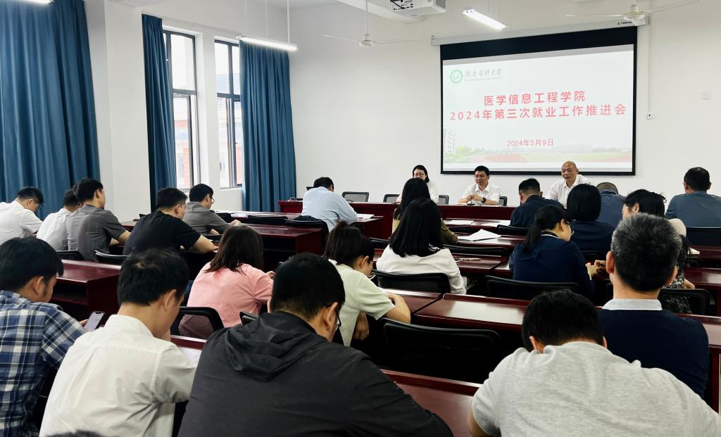 5月9日中午,医学信息工程学院在医工大楼召开2024年第三次就业工作推进会,该院党政领导、全体教职工参加,党委副书记王静雅主持会议。