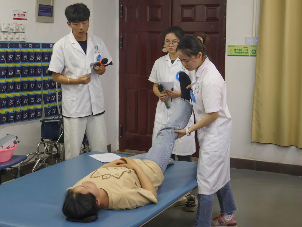 大赛开始,5支队伍,20名参赛选手在“争先恐后”“初露锋芒”“火眼金睛”“八仙过海”四个环节中,通过实操分析,激发选手的临床思维能力,将所学理论知识应用于实际临床操作中。选手们凭借深厚专业知识功底、出色的应变能力,充分展现了扎实的康复知识技能以及默契的团队协作能力。