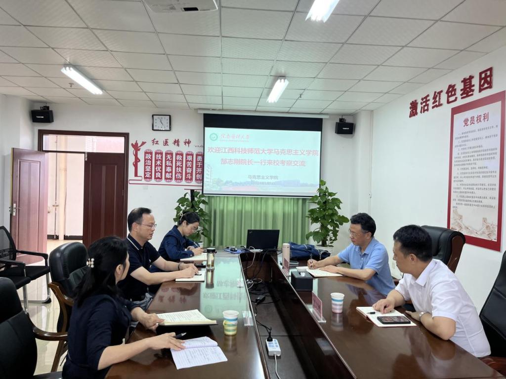 6月5日下午,江西科技师范大学马克思主义学院院长郜志刚一行来校考察交流并召开座谈会。马克思主义学院党委副书记、院长曾新华,党委委员、副院长曾芳莲以及教师代表参加会议。