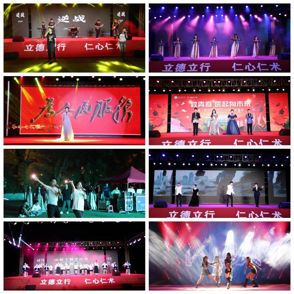 珍重感念,深情的歌声里,是飞扬的青春,毕生珍藏。一曲《再见》纵使山水迢迢,情谊不绝;合唱《起风了》重温在赣医大奋斗的岁月;压轴曲目《不忘初心》将现场氛围推向高潮,展现了一临医学子“强国有我”的挺膺担当。
