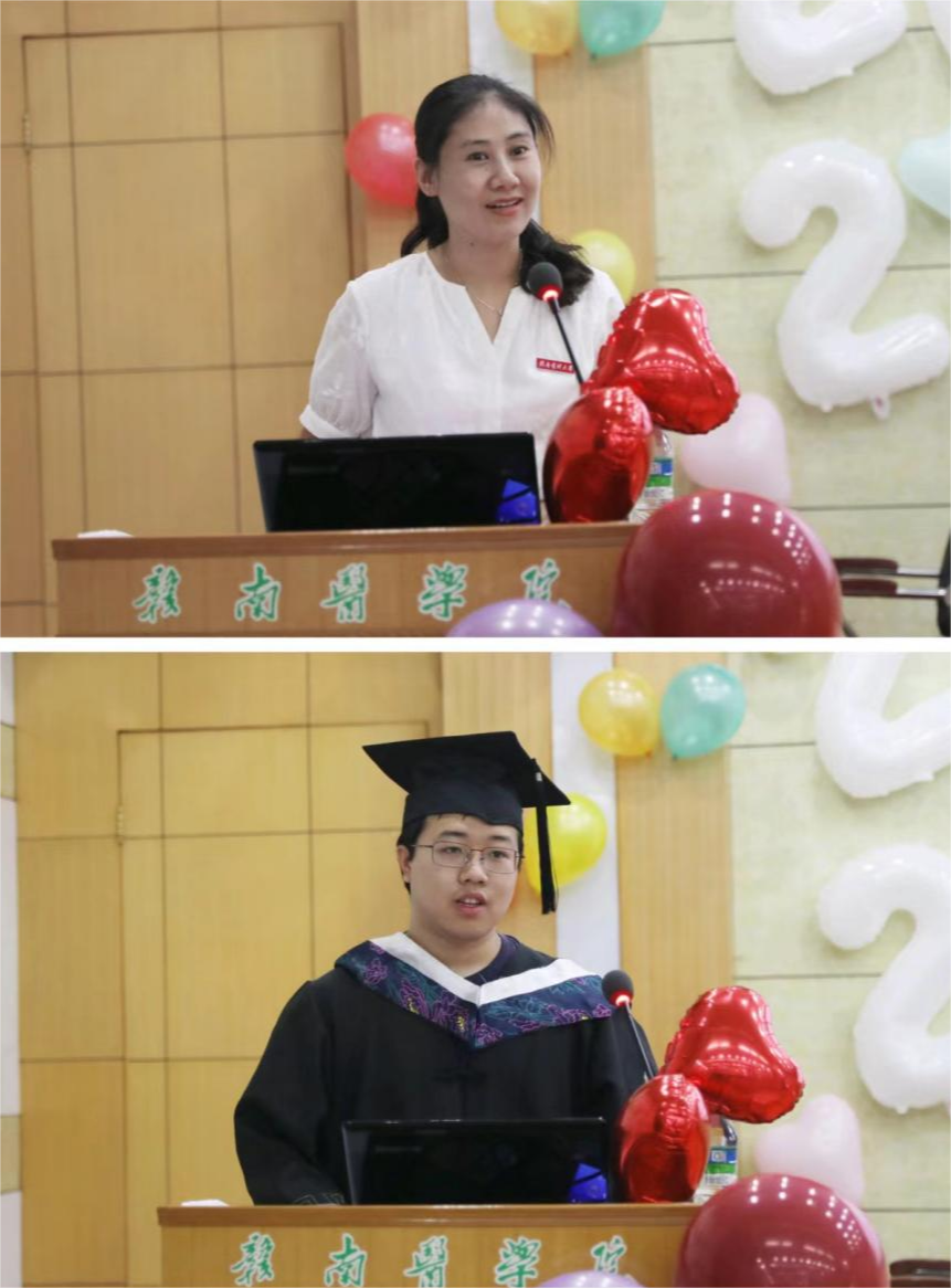 全科医学技能教研室杨娟、2024届毕业生邓新晨分别作为教师与学生代表发言。