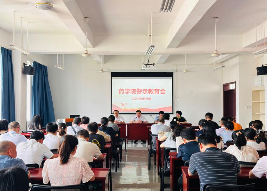 6月20日,药学院在黄金校区召开警示教育会,该院党政领导班子彭磊、黄浩、罗丽萍、丁冶春及全院教职工参加,该院党委书记彭磊主持。