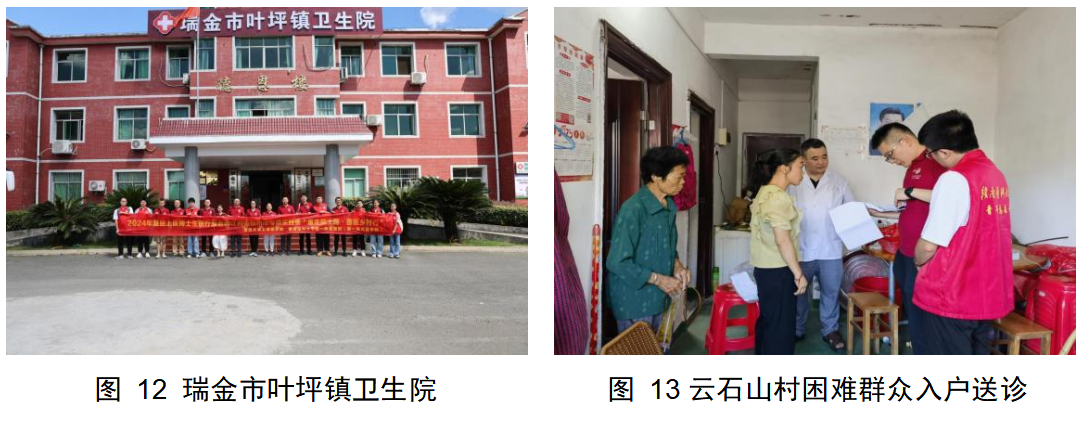 为调研了解基层医疗现状,社会实践服务团前往瑞金市叶坪镇卫生院和云石山乡中心卫生院参观学习,并在当地医生的带领下,深入到当地患病困难群众的家中进行入户问诊服务。通过查阅健康档案,详细了解治疗记录和生活习惯,为群众提供更为个性化和针对性的医疗建议。