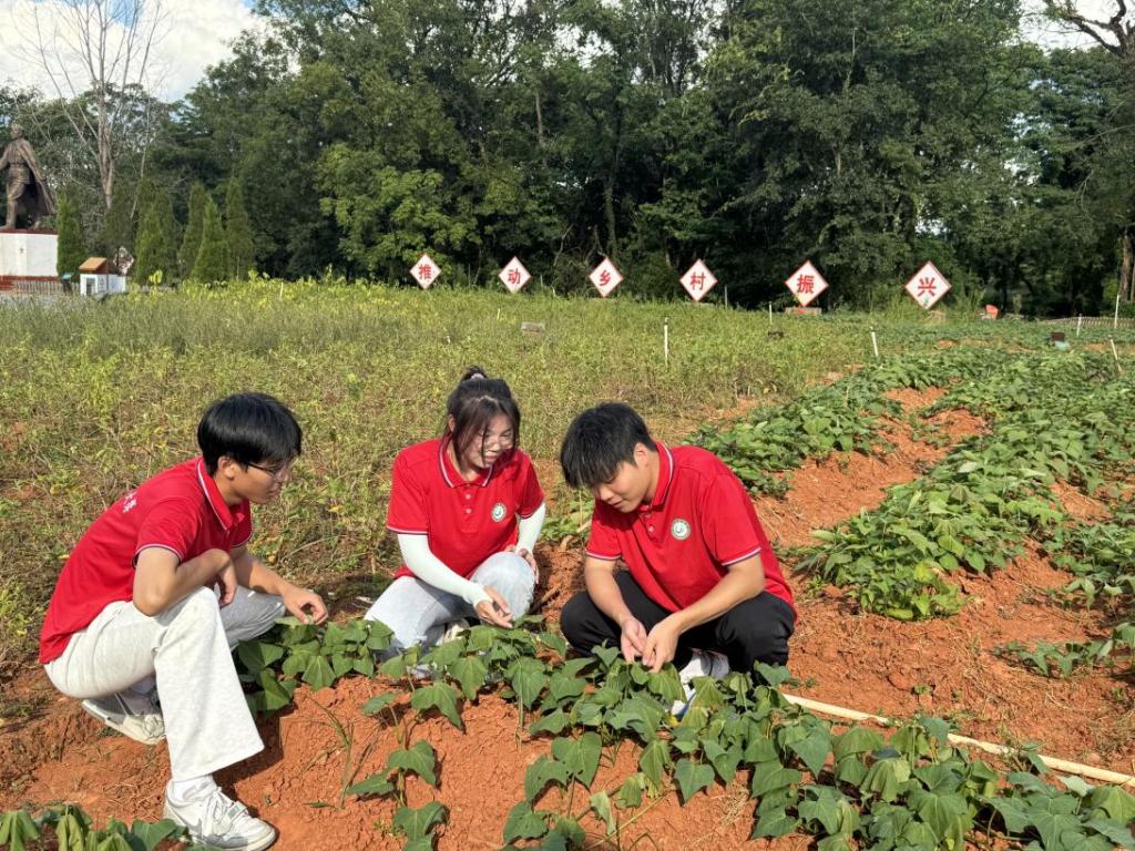 随后,实践服务队的成员来到中草药种植园,种植人员向大家介绍了基地内各种草药的生长环境、种植技术和药用价值。在种植人员的带领下,成员们深入田间地头,亲身体验中药种植的过程,通过近距离观察中草药,亲手触摸嫩绿的叶片,大家对各类中药材的形态和特征有了更直观的了解和认识。