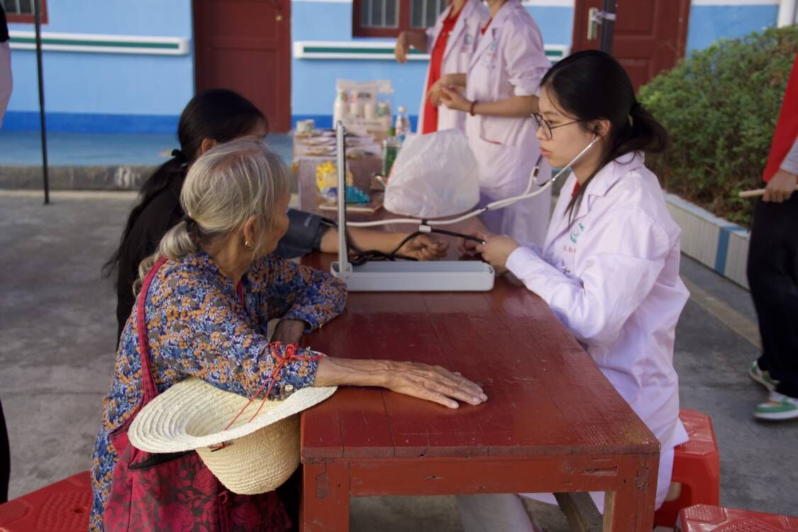 服务零距离,义诊暖人心。为让当地群众能够切身感受中医药文化的魅力,体验中医传统疗法服务,实践队先后前往上堡乡新民社区和圩镇开展中医药文化宣传暨义诊活动。期间,实践队员们结合所学专业知识,为居民进行推拿艾灸、耳穴压豆、肩部刮痧等中医传统疗法服务,供应白刺香薷中药茶饮,发放香包香囊和防暑降温用品。