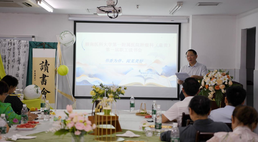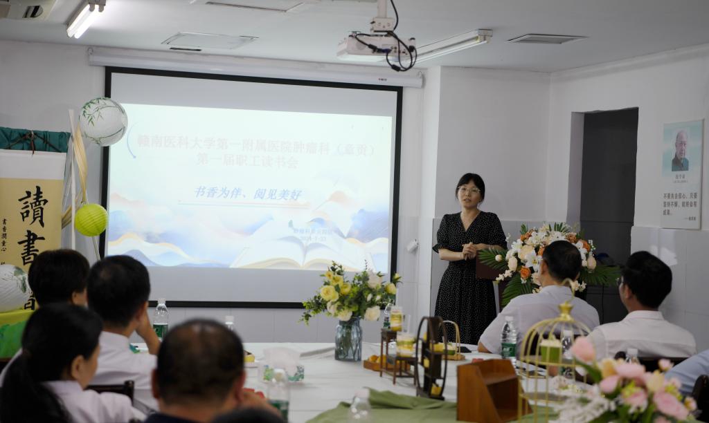 为进一步加强科室文化建设,丰富职工文化生活,7月23日,我校一附院章贡肿瘤科一区举办了一场以“书香为伴,遇见美好”为主题的读书分享会。学校党委委员、副校长,第一临床医学院、第一附属医院党委书记黄瑞忠出席并作分享和活动点评。