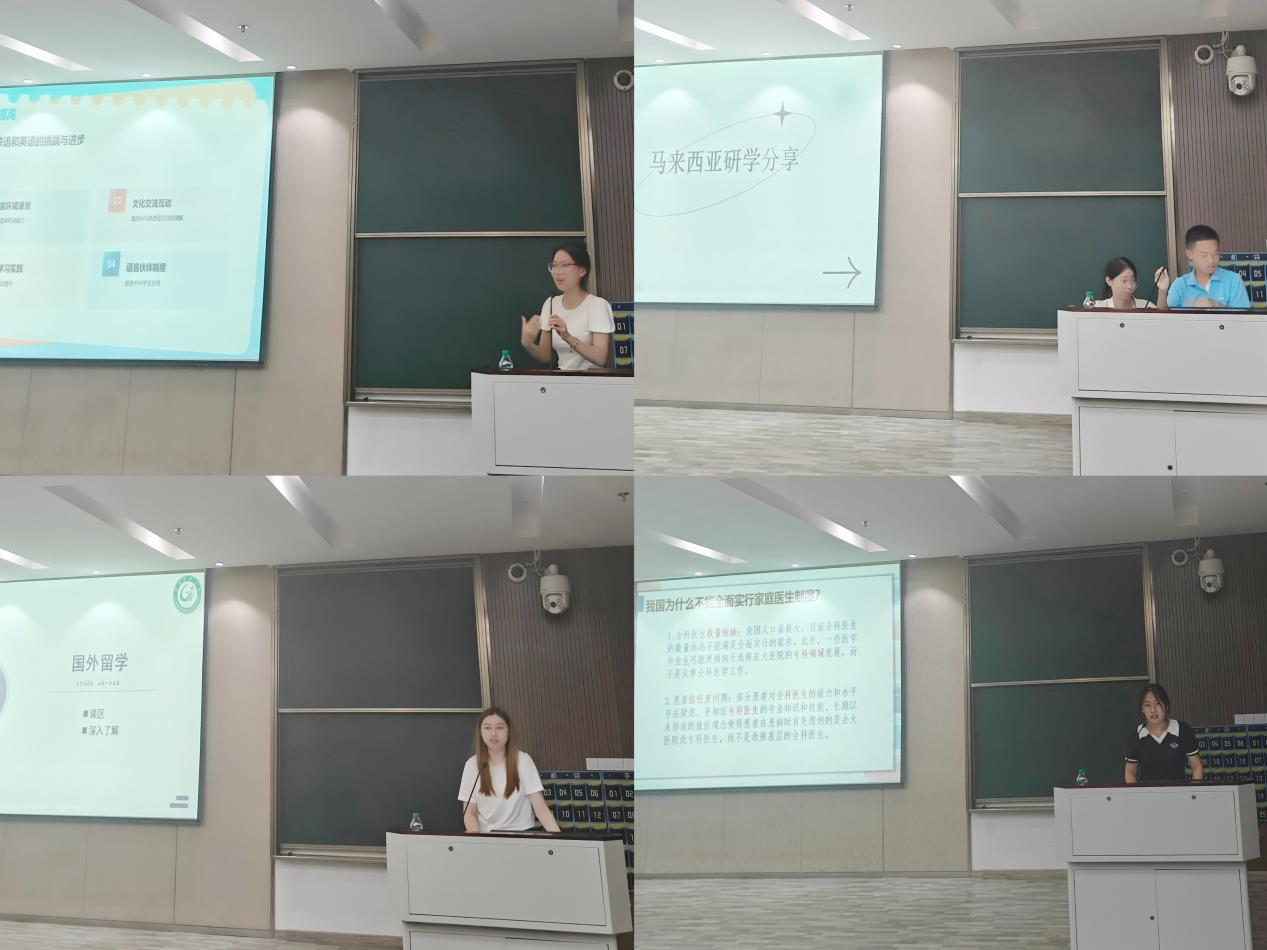 其后,六名参加德国及马来西亚研学之旅的学生代表也进行了精彩的心得分享。他们纷纷对学校提供这次访学的机会表示衷心感谢,让他们收获了宝贵的知识和经验。参加德国纽伦堡大学、法兰克福⼤学研学的代表林子璇表示通过参观德国高校的实验室、参加专业课程讲座及欧洲城市游览等方式,对德国的医学教育体系、医疗体系及欧洲的生活学习等等,都有了更为直观和深入的了解。陶爰名则认为此次访学之旅让他们深刻认识到英语能力的重要性,也拓宽了国际视野,收获了纯真的友谊,是难得的人生宝贵经历。参加马来西亚英迪国际大学暑期研学之旅的同学奉星宇表示虽然研学只有短短一周的时间,但是课程丰富密集,体验了马来西亚的异国文化和艺术,参观了当地企业,探索了马来西亚城市等等活动,受益良多,尤其是在跨文化及语言沟通能力、独立解决问题能力方面得到巨大的锻炼。