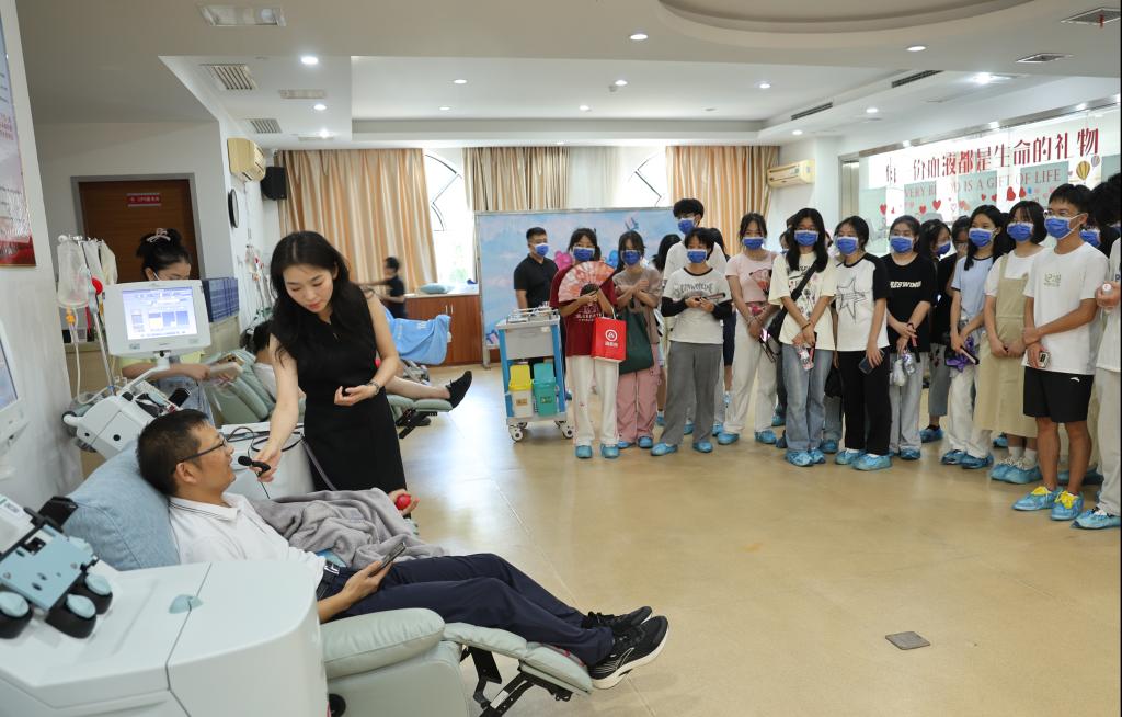 参观过程中,血站工作人员带领同学们走进供血科、机采科、成分科等科室,对同学们的疑问进行了详细解答,让同学们对血站的专业性和严谨性有了更深刻的认识。在献血科现场,献血者与同学们分享了自己无偿献血的故事,同学们对献血者勇于担当的行为产生由衷的敬佩。