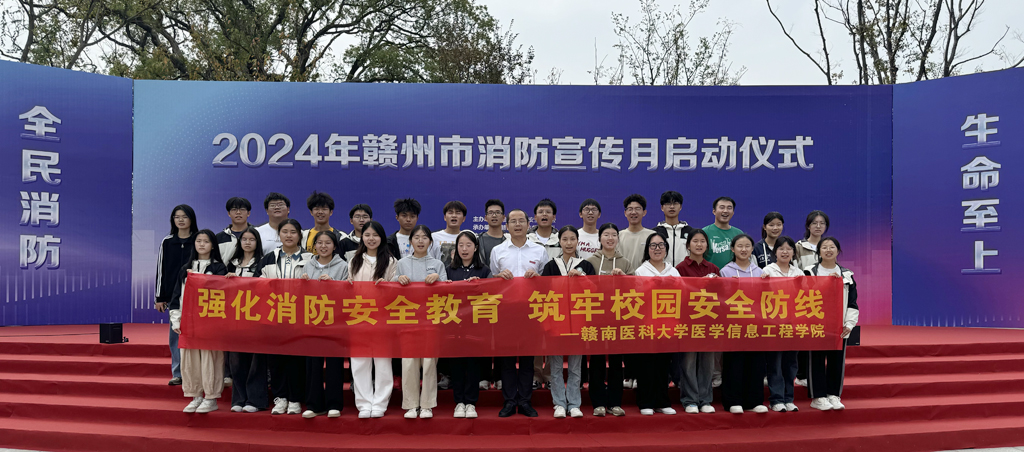 11月5日,医学信息工程学院30余名师生代表学校赴赣州市消防主题公园,参加2024年赣州市消防宣传月活动启动仪式。