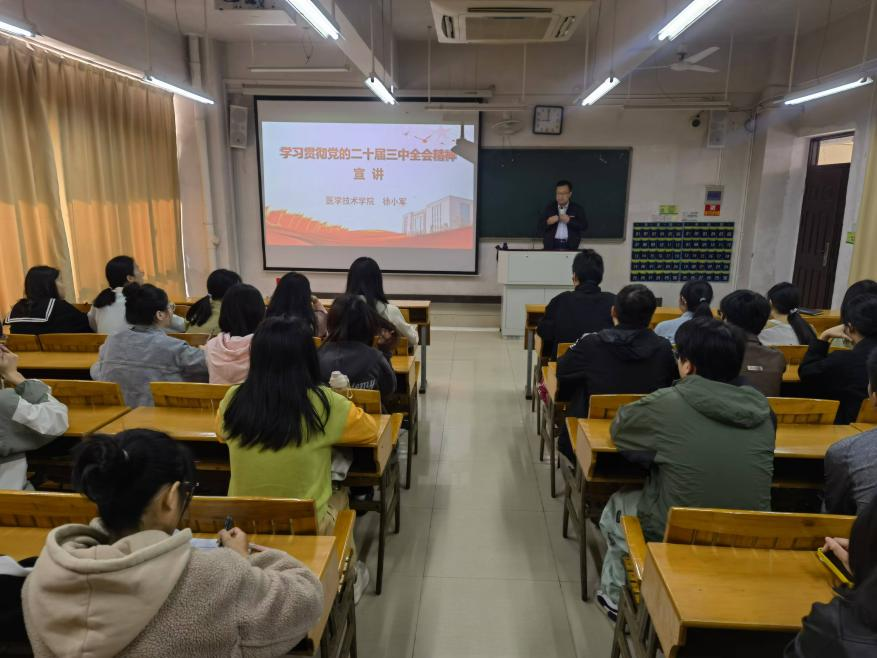 11月7日,医学技术学院党委副书记、院长徐小军宣讲党的二十届三中全会精神,该院本科生第二党支部全体党员、入党积极分子参加。
