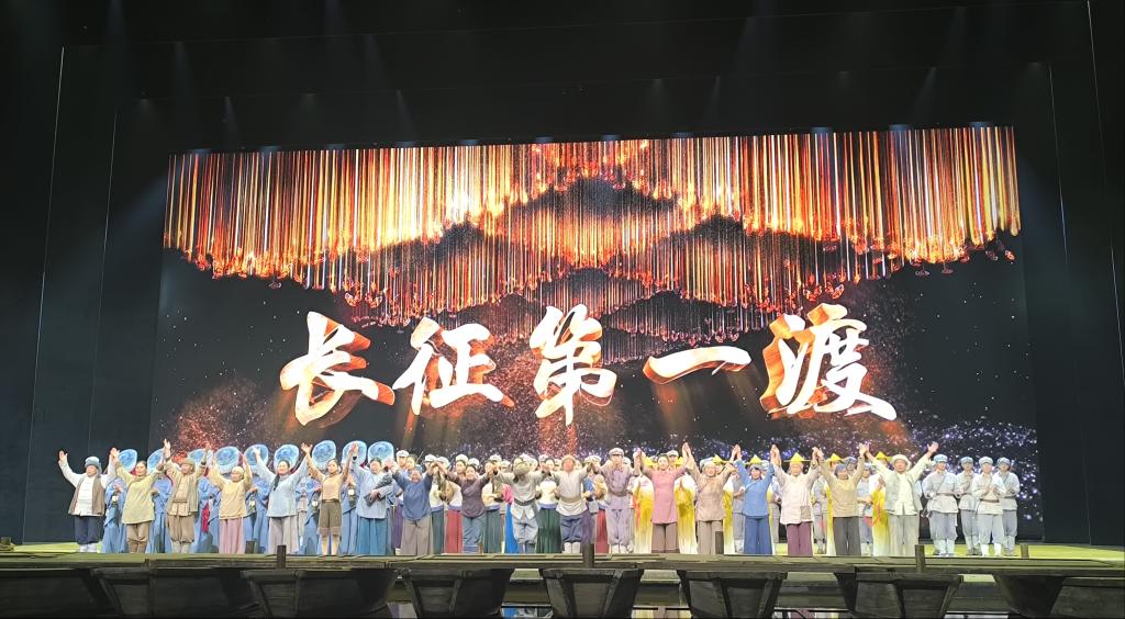 在长征大剧院中,全体师生观看《长征第一渡》红色演艺剧目,剧中先辈们告别亲人,义无反顾地踏上未知而艰险的道路。在座的师生观众们仿若穿越时空,见证红军的英勇无畏,并为新长征奋斗之路汲取养分。