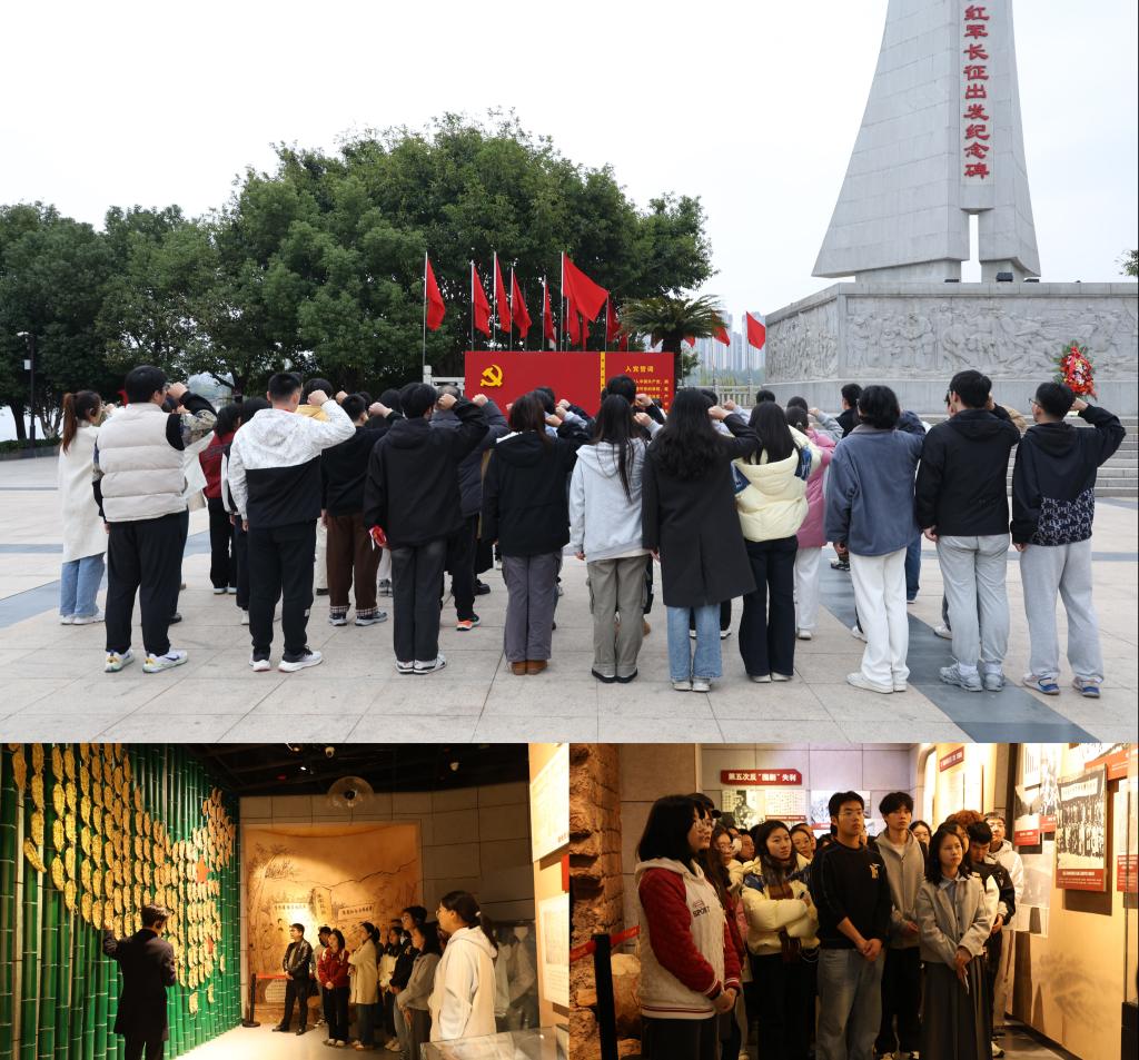 在中央红军长征出发纪念碑前,师生们怀着崇敬的心情瞻仰纪念碑,并鞠躬致敬。随后,他们来到中央红军长征集结出发地旧址——东门渡口。在全体师生观看了红色文艺演出《告别》后,又前往中央红军长征集结出发地纪念馆参观。师生们走过的每一块砖石、每一寸土地,都凝聚着先辈们对革命理想的执着追求。大家在此汲取了伟大的精神力量,让红色火种在心底重新燃烧,照亮新时代的长征之路。