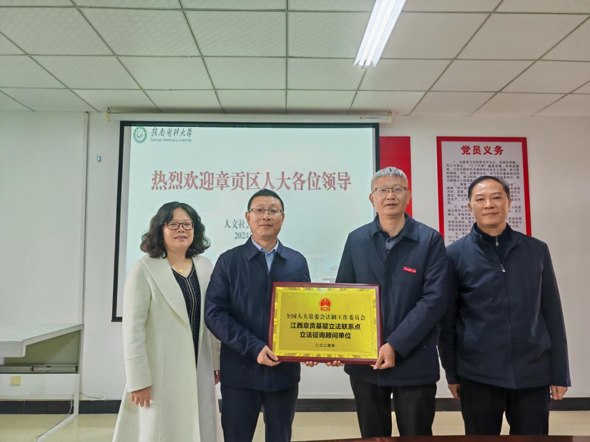 12月10日,“江西章贡基层立法联系点立法征询顾问单位”授牌仪式在我校黄金校区举行。章贡区人大常委会副主任钟春华,人文社会科学学院领导王立、赖日勇和法学专业教师参与揭牌。