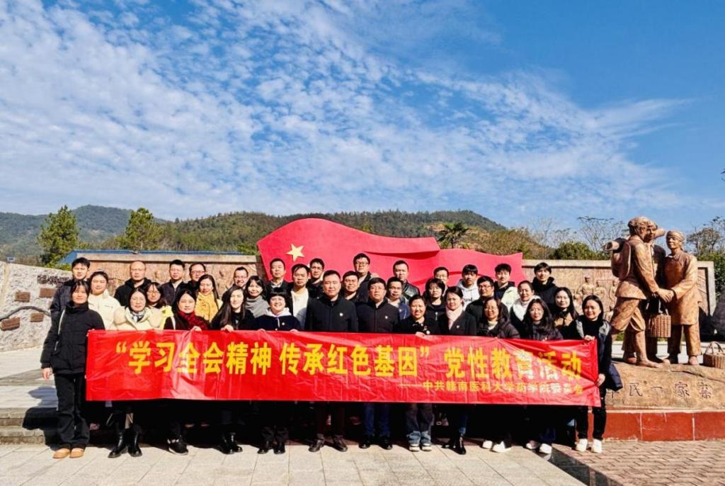 12月15日,药学院党委组织师生党员前往龙南市中共信南县委旧址、烟园围红色教育基地、赣南医科大学龙南校区开展“学习全会精神 传承红色基因”党性教育活动,该院党委班子成员、各党支部书记及师生党员参加。