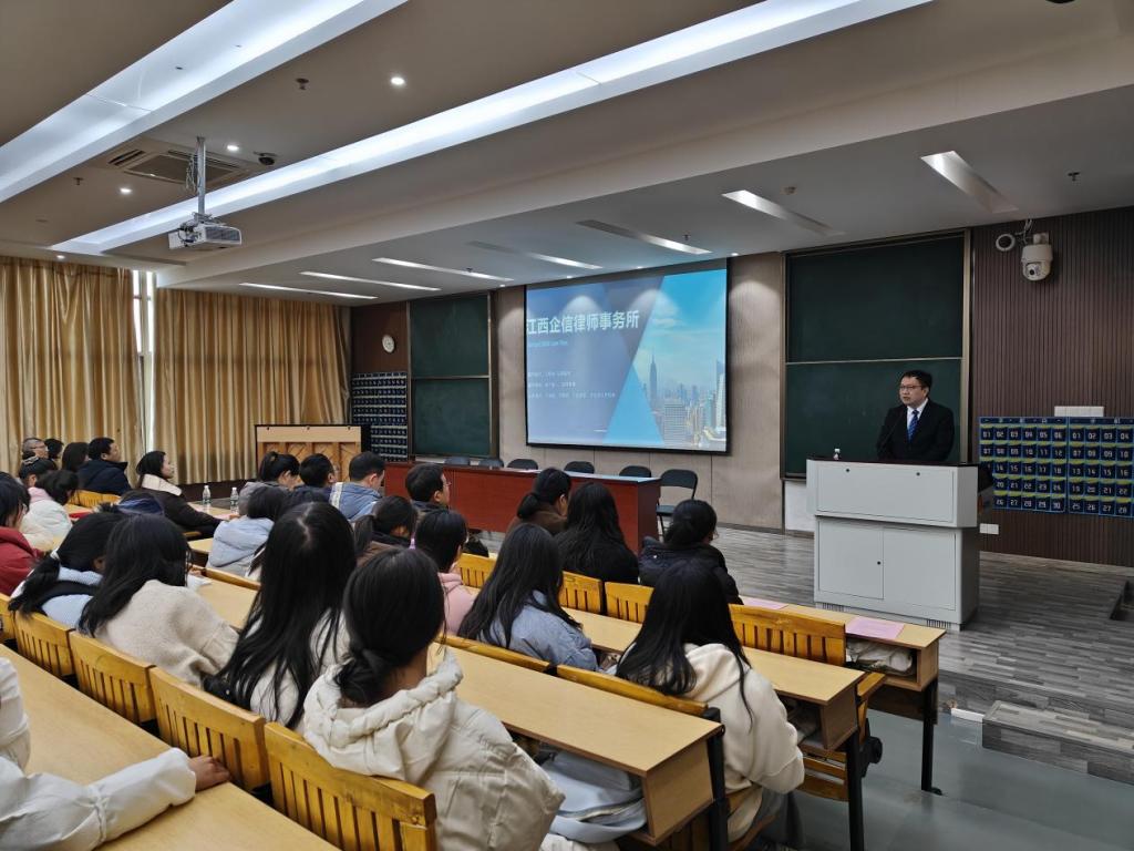 12月24日下午,人文社会科学学院举办江西企信律师事务所专场招聘会暨“企信”奖学金颁奖仪式。学院党政领导、全体法学专业师生参加。