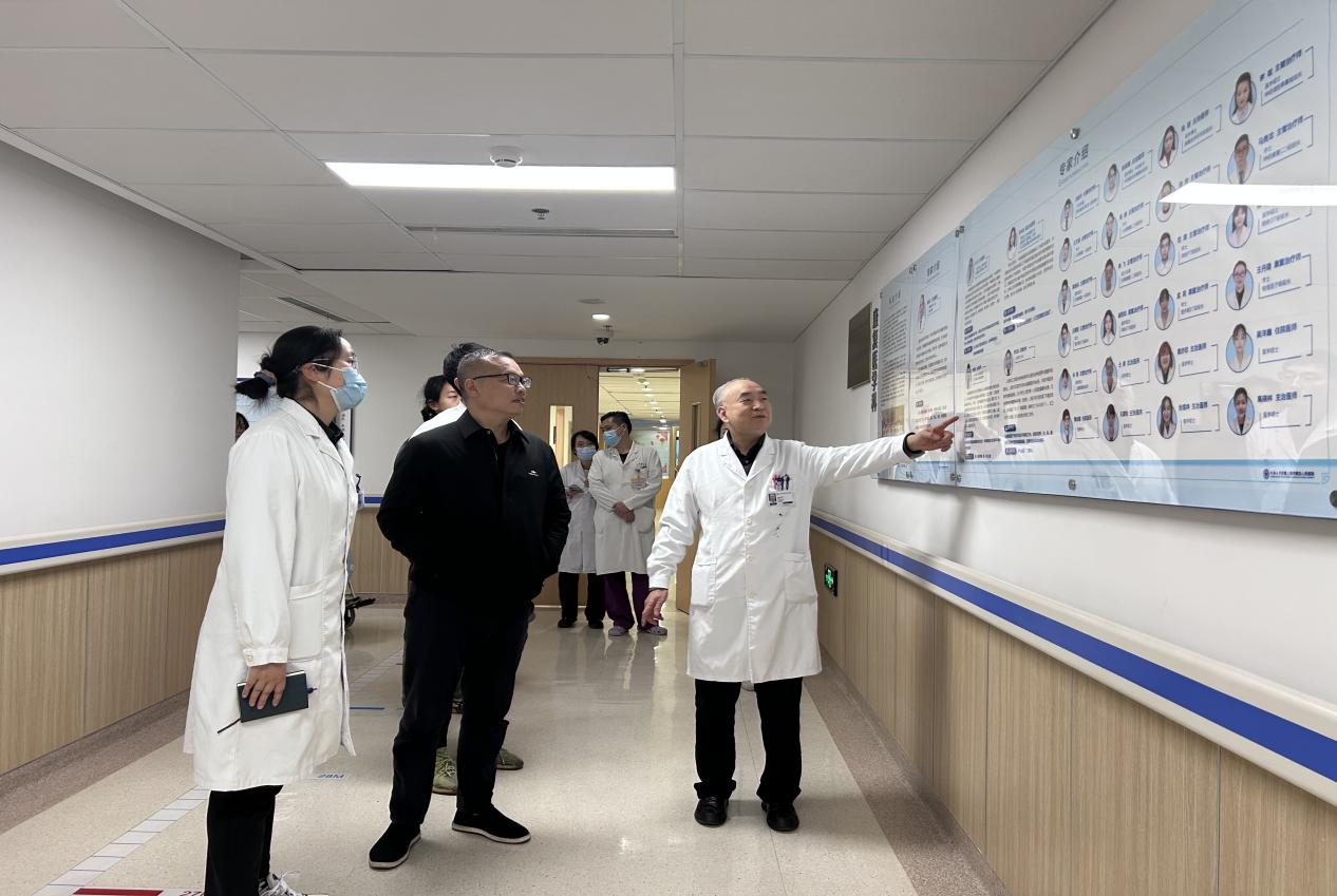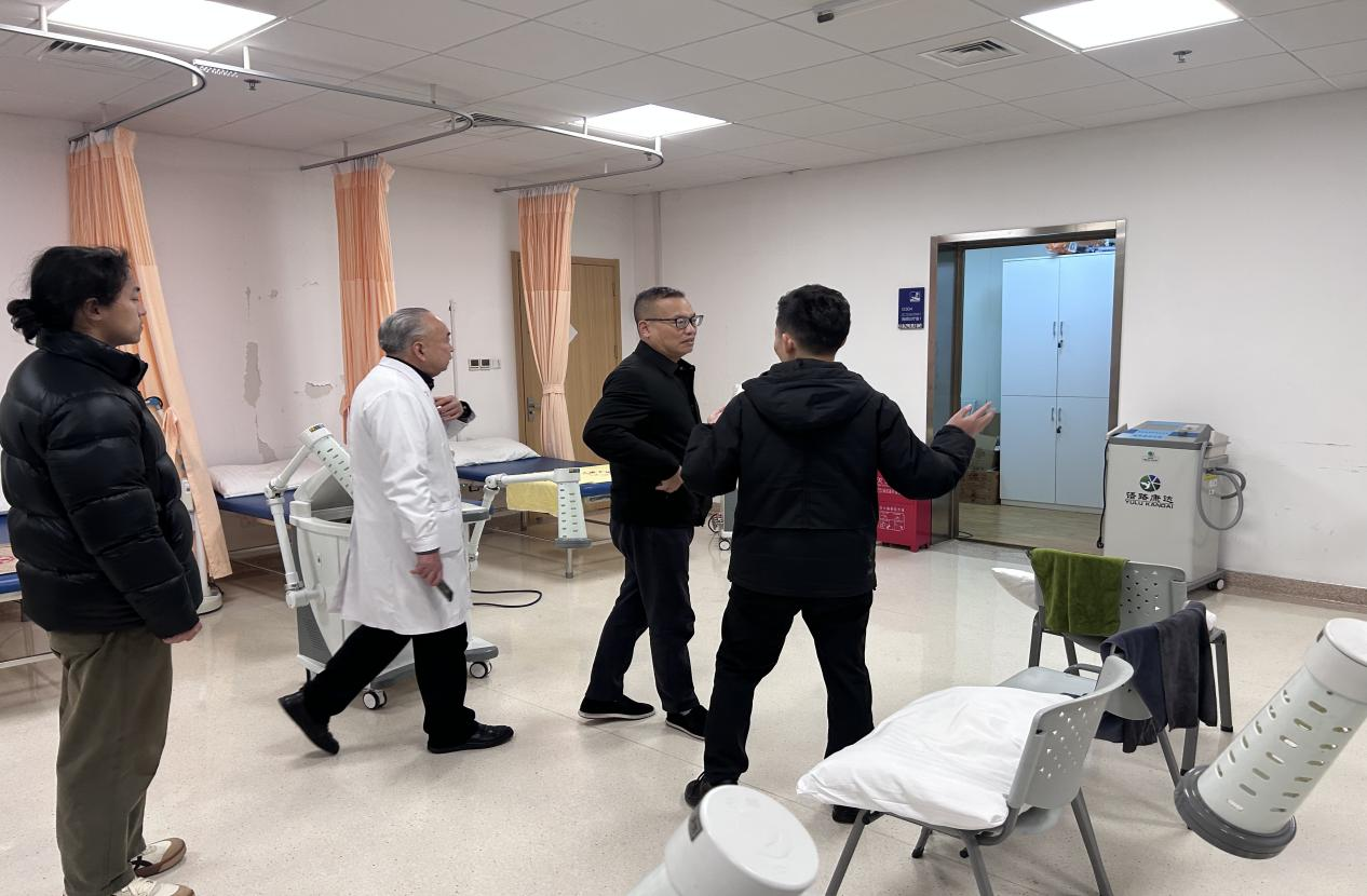 在同济大学附属上海第四人民医院,温优良一行在康复科主任张安仁的陪同下观了单位的工作环境和科室设施,听取了科室发展的相关介绍,双方还就医康养应用型人才培养进行了深入交流。