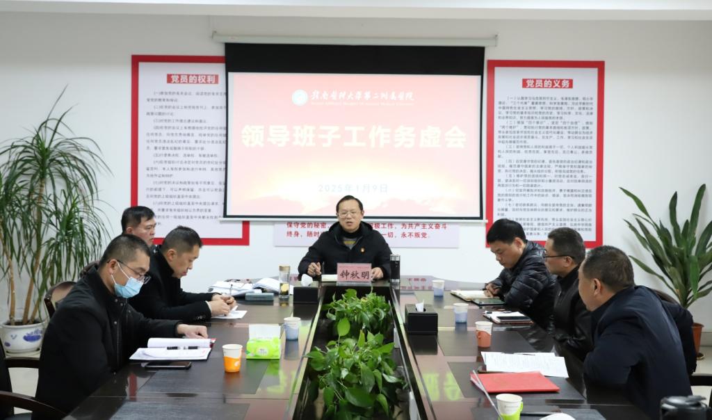 1月9日,第二临床医学院(第二附属医院)召开领导班子工作务虚会。该院党委书记钟秋明主持会议。