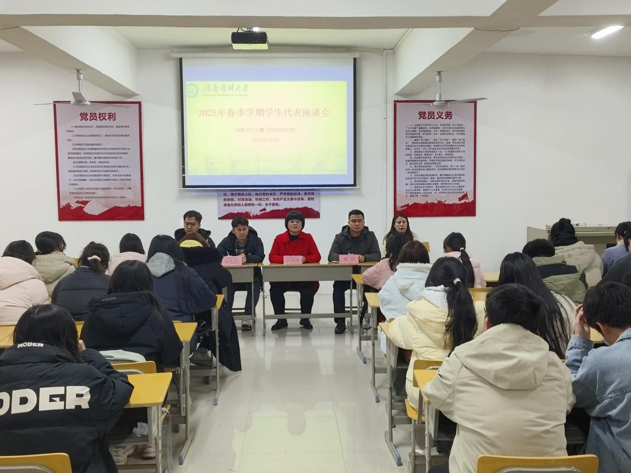 3月6日下午,药学院召开2024-2025学年春季学期学生代表座谈会,学院党委副书记罗丽萍、学工办全体辅导员、各班级学生代表参加。