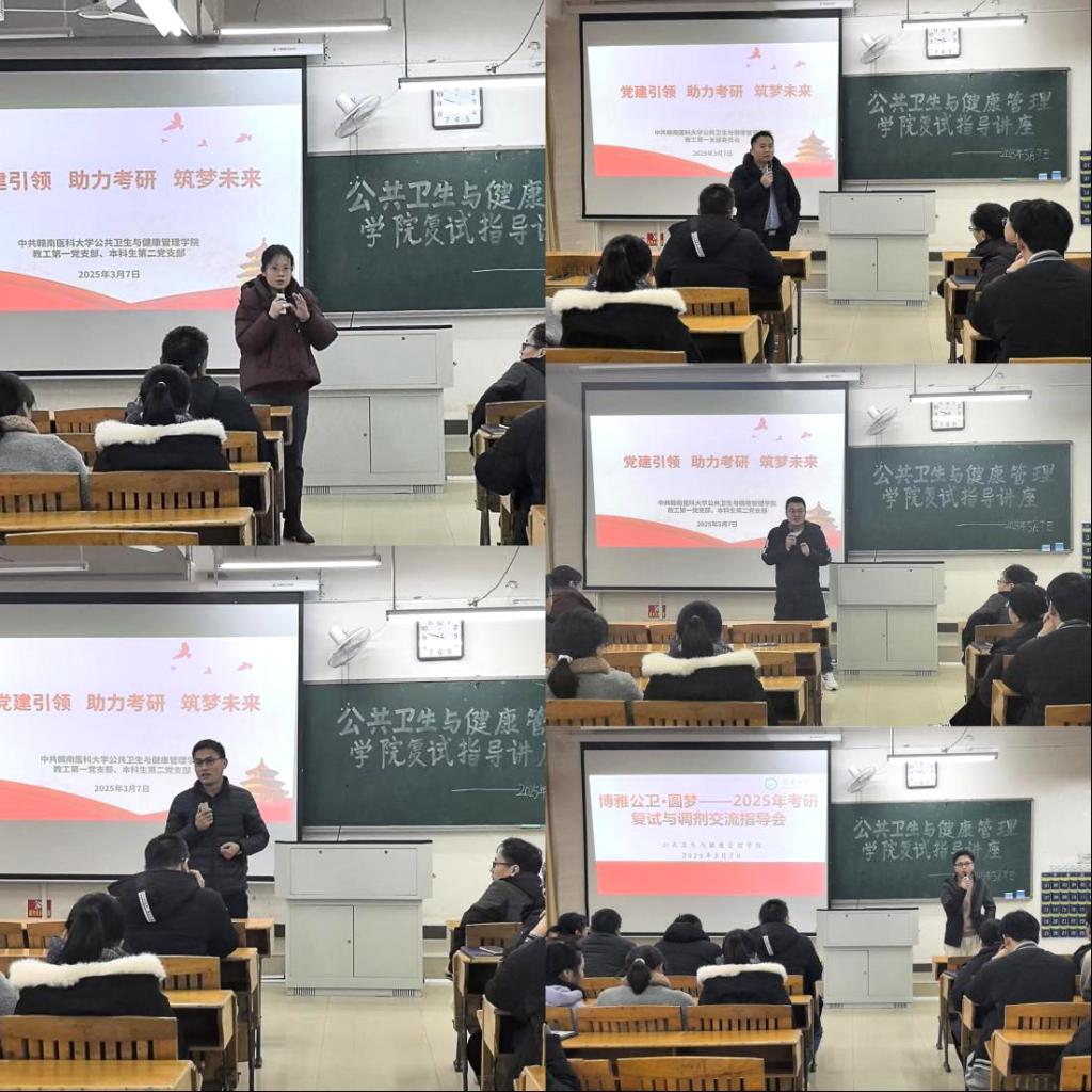 3月7日上午,公共卫生与健康管理学院举办考研复试与调剂交流指导会。学院院长黄诚,学院教工第一党支部教师、学工办辅导员及2025届考研复试同学参加会议。