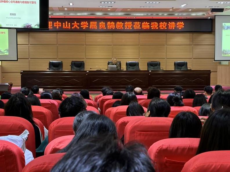 3月10日上午,中山大学逸仙学者、著名生物化学与分子生物学家屈良鹄教授应邀到我校,为师生带来了一场题为《新一代精准医疗:靶向肿瘤核心信号通路与癌细胞可塑性》的专题学术报告。本次报告由基础医学院副院长谢富华教授主持,吸引了学院200余名师生积极参与。