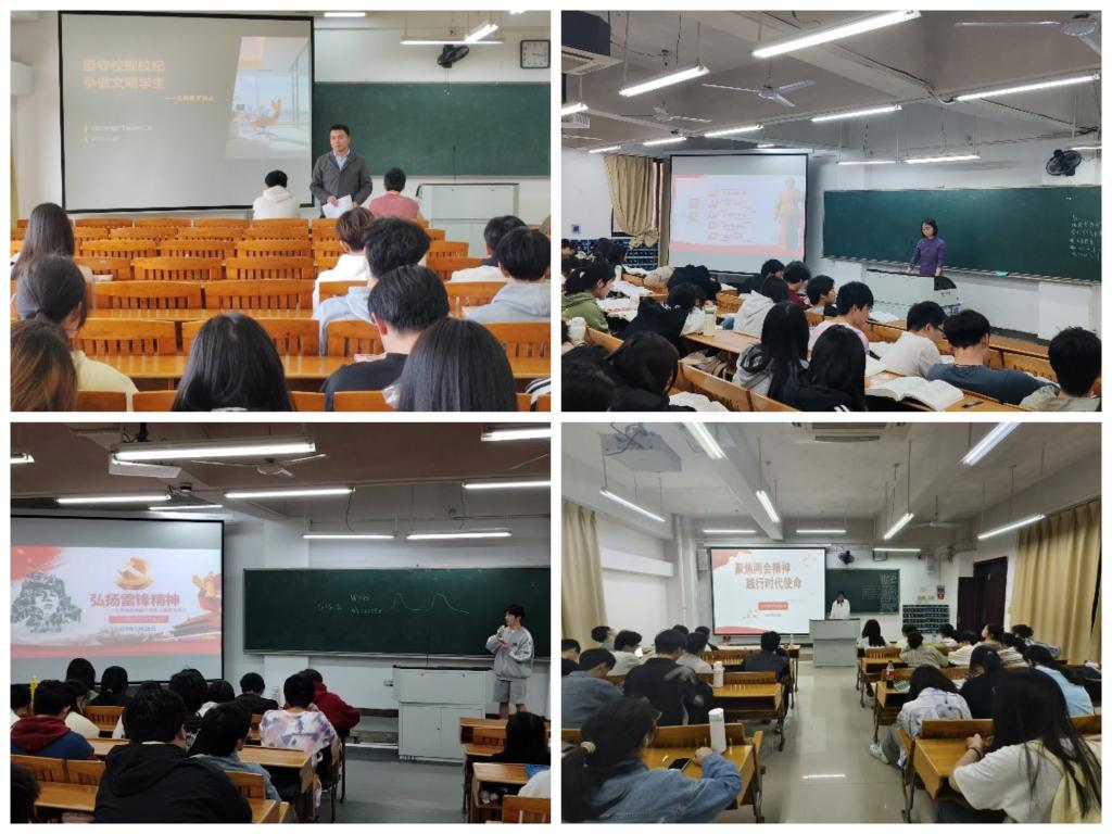 为进一步强化大学生思想政治教育工作,3 月,药学院奏响了一场主题鲜明、形式多样的育人“交响曲”,组织全院各班级开展了以 “遵守校纪校规,争做文明学生”“弘扬雷锋精神 —— 让青春在奉献中绽放”“聚焦两会精神,践行时代使命” 为主题的系列班会活动。