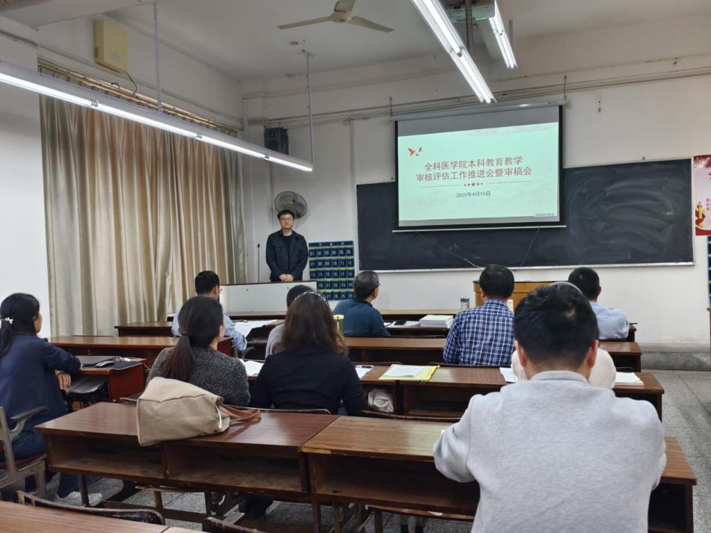 4月10日下午,全科医学院在章贡校区召开本科教育教学审核评估(以下简称“审核评估”)工作推进会暨审稿会。学院党委书记廖信伟,党委副书记、院长黄光生出席会议,学院全体教师参会,会议由党委副书记朱锦主持。