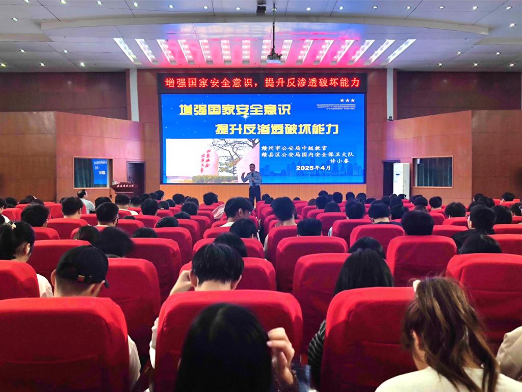 为深入学习贯彻总体国家安全观,切实增强师生国家安全意识,4月14日,马克思主义学院、保卫处联合举办“总体国家安全观”专题教学活动,特邀赣州市公安局中级教官、赣县区公安局国内安全保卫大队许小春开展讲座。马克思主义学院院长曾新华主持,学校保卫处、马克思主义学院教师及学生代表共300余人参加。