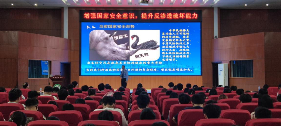 4月14日晚上,由马克思主义学院和保卫处(人武部)共同策划的“增强国家安全意识 提升反渗透破坏能力”知识讲座在黄金校区多功能厅举行,讲座邀请了赣县区公安局国保大队长许小春警官为主讲,许警官结合当前国内外安全形势,通过典型案例剖析,系统阐述了总体国家安全观的深刻内涵与实践要求,许小春强调,意识形态渗透关乎政治安全,维护国家安全没有局外人,每个人都应成为国家安全的守护者。