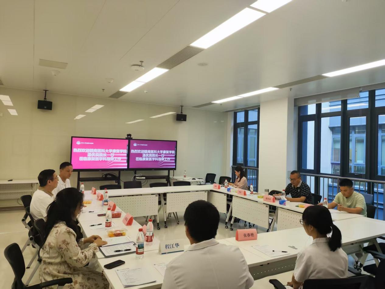 在深圳大学附属华南医院,温优良一行与医院助理院长樊光辉、康复医学科主任杜科涛、康复医学科治疗师长程江华等开展座谈交流。会上,樊光辉从医院的建院历史、科室建设、医院特色、用人需求等进行了详细介绍,程江华从科室临床带教、科室诊疗情况等进行了详细汇报。随后,温优良从学院办学理念、办学特色、发展成果及2025届毕业生生源情况等方面进行了介绍,双方还就医康养应用型人才培养进行了深入交流。