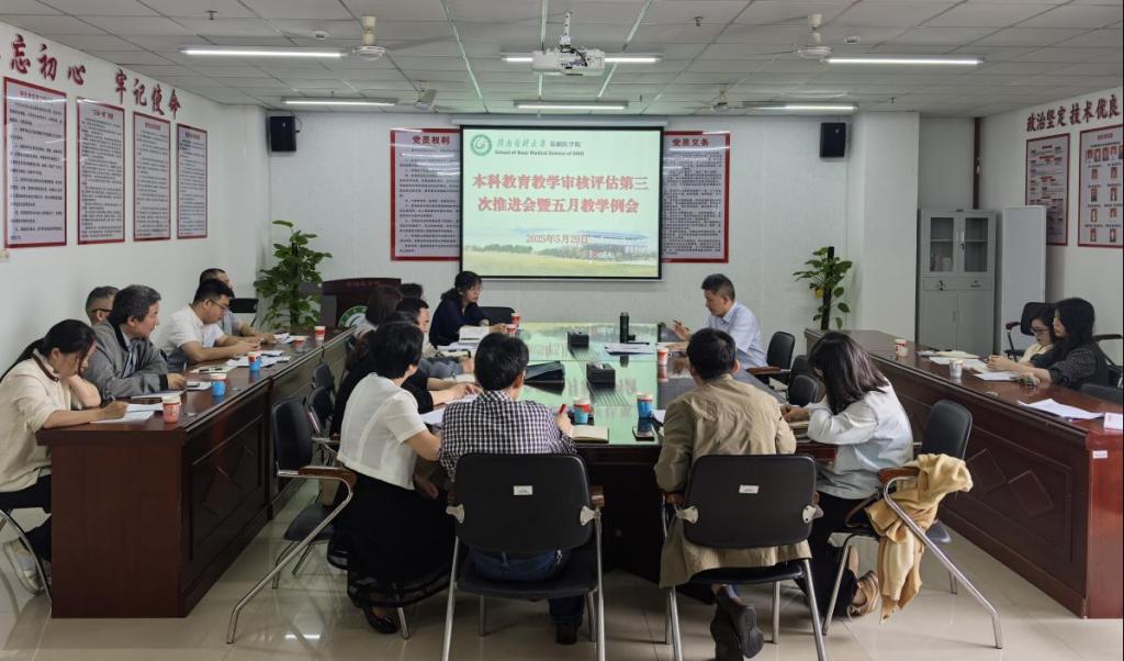 为进一步落实本科教育教学审核评估工作部署,扎实推进教学高质量发展,5月29日上午,基础医学院召开本科教育教学审核评估第三次推进会暨教学例会。学院领导、各教研室主任、副主任及教师代表共20人参加会议。会议由学院分管教学副院长谢富华主持。