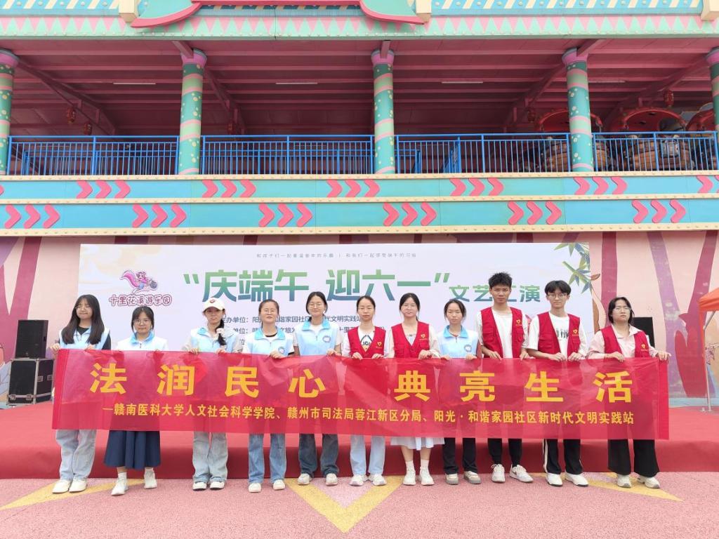 5月30日上午,为深入贯彻落实习近平法治思想,在第五个“民法典宣传月”期间,人文社会科学学院联合阳光·和谐家园社区新时代文明实践站、赣州宝成文旅发展有限公司等多家单位,在十里花溪游乐园开展民法典普法宣传活动。