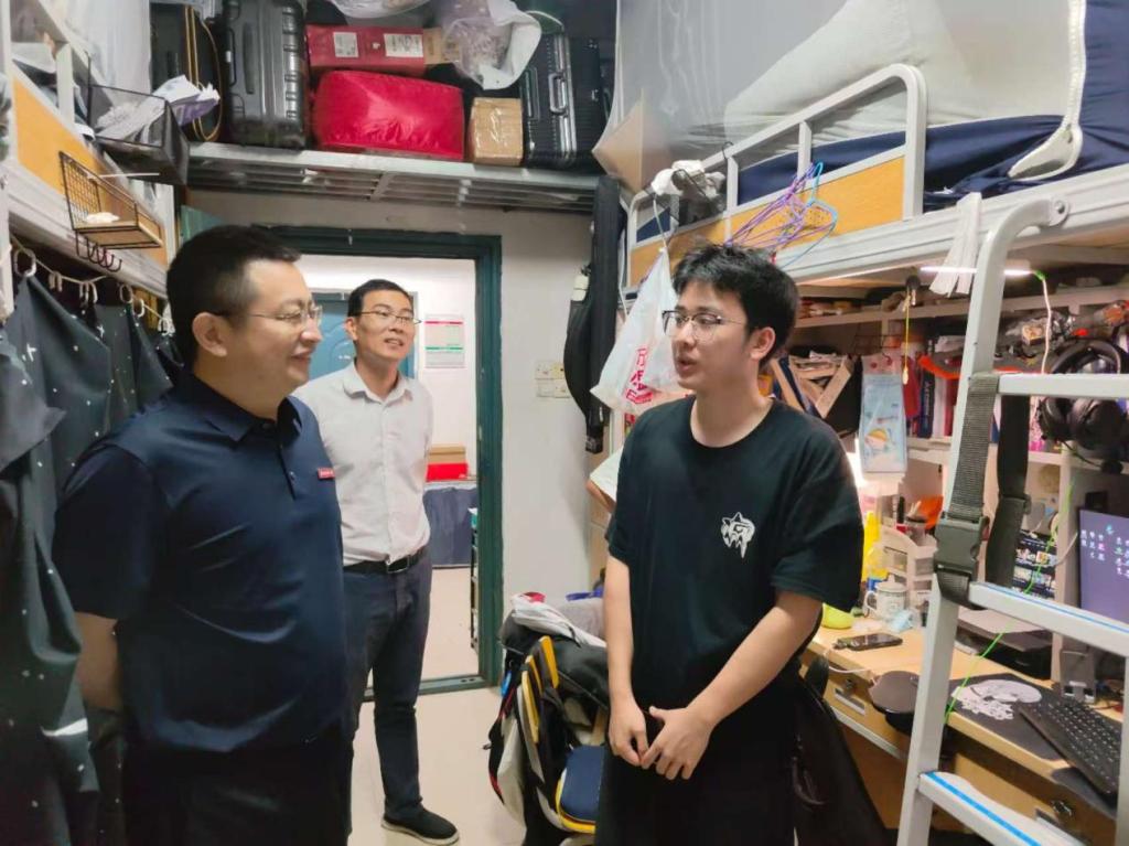 座谈会前,廖信伟书记还带队前往学生宿舍进行了走访慰问和调研。他亲切地询问学生们的生活情况和学习状况,并为他们送去了节日的祝福和学院的关怀。
