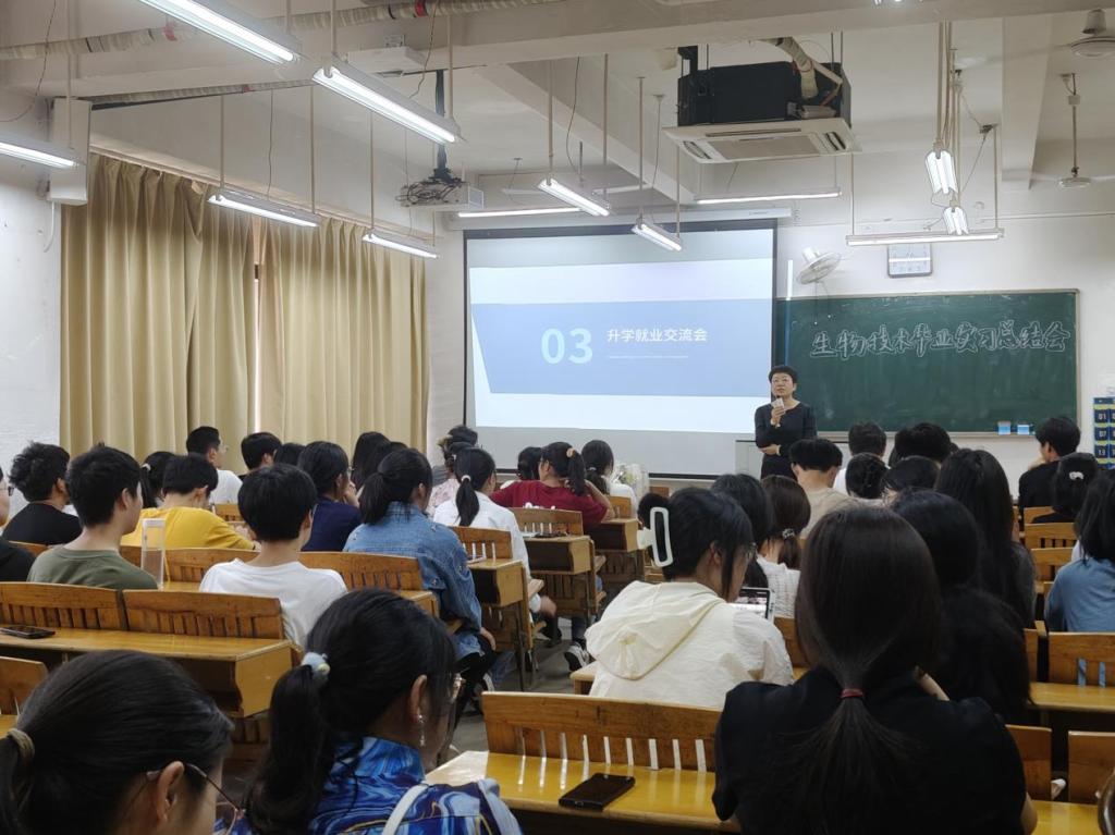 5月30日,基础医学院在黄金校区举办生物技术专业考研及就业经验交流会,基础医学院党委书记陈联娇参加活动并讲话,生物技术专业负责人甘滔、全体生物技术专业学生参加活动。