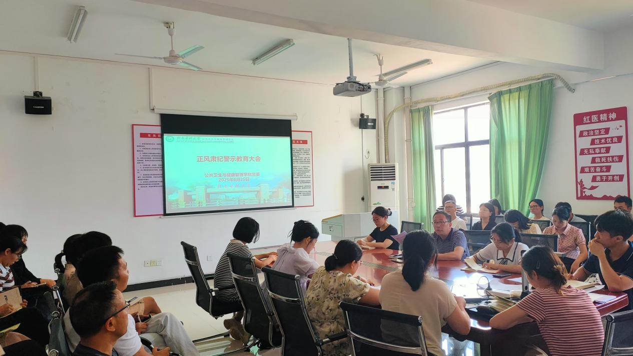 6月26日,公共卫生与健康管理学院组织全体教职工召开正风肃纪警示教育大会,会议由学院党委书记邱伟主持。