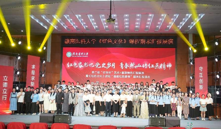 6月29日下午,由校团委、马克思主义学院、苏区卫生与健康中国建设研究中心联合主办的第二届“红医杯”艺术+思政特色汇报展演暨《红色文化》课程期末汇报演出在黄金校区多功能厅举行。来自全校19个班级的近200名学生通过沉浸式艺术展演,深情演绎红色家书中的革命信仰与家国情怀,为观众呈现了一堂生动的思政艺术课。