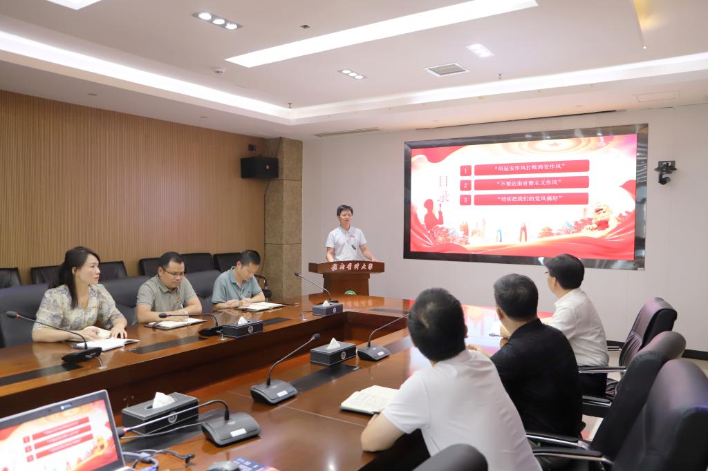 7月1日,机关第三党支部书记汪行舟以《扎实开展深入贯彻中央八项规定精神学习教育——作风建设永远在路上》为题,为机关第三党支部的全体党员讲授深入贯彻中央八项规定精神学习教育专题党课。