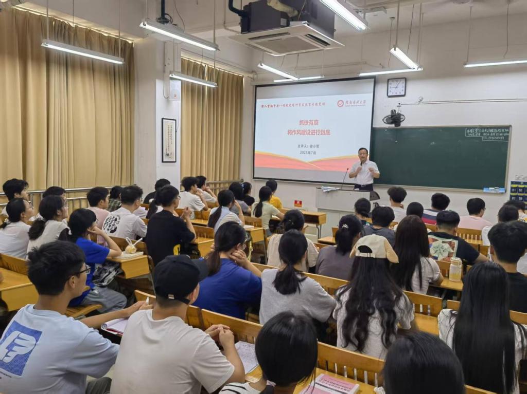 7月7日,医学技术学院党委副书记、院长徐小军以《抓铁有痕,将作风建设进行到底》为主题,为该院本科生第二党支部全体党员、入党积极分子和入党申请人讲授专题党课。