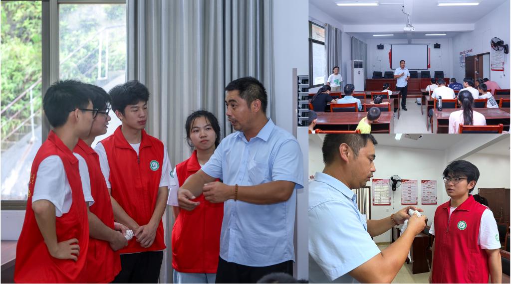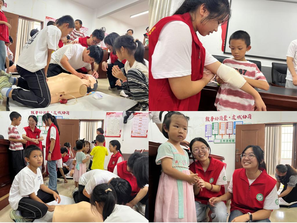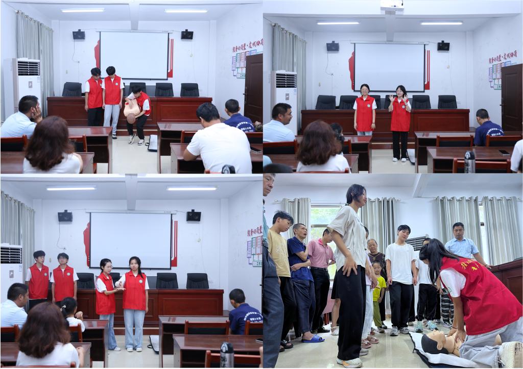 在这个小而温暖的村委会办公室里,12名医学生把专业急救知识送到村民身边。现场,队员们用急救模型精准演示海姆立克急救法“剪刀—石头—布”三步法,带领村民分组练习;通过自编“叫叫压抬”口诀和儿歌,引导大家掌握心肺复苏的标准动作和节奏;还用绘声绘色的讲解和互动,将七步洗手法编成洗手儿歌,带着老人孩子反复练习,帮助村民养成良好卫生习惯。