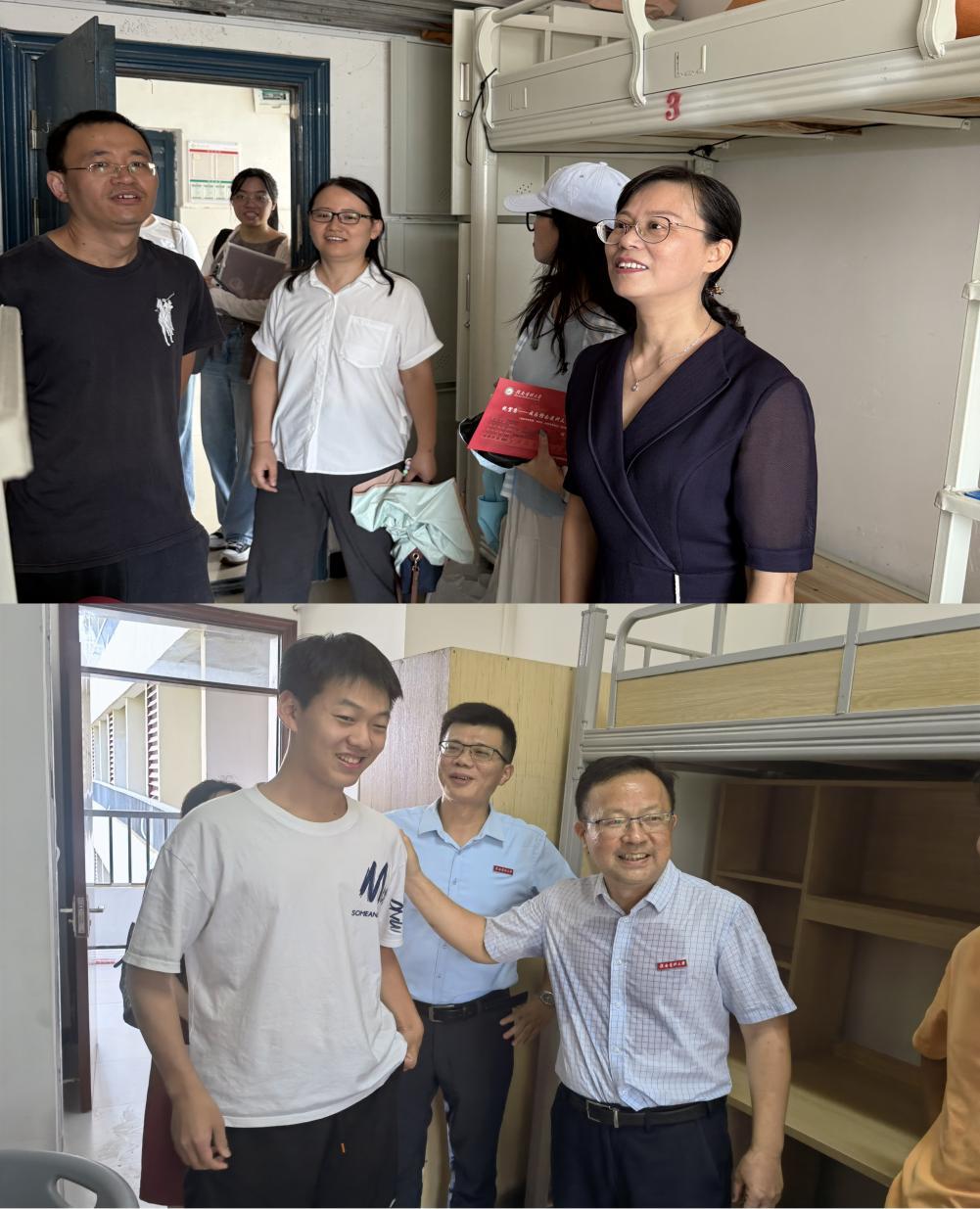 走访宿舍过程中,学院领导与新生及家长面对面交流谈心,详细介绍住宿条件、寝室门禁与网络等使用情况,叮嘱同学们注意用电安全,同时倾听关怀同学们的生活需求。学院领导还向同学们提出了殷切期望,鼓励同学们要坚定理想信念,树立明确的学习以及科研目标,希望同学们在校训精神的引领下,以青春之我书写“健康中国”的医者答卷。