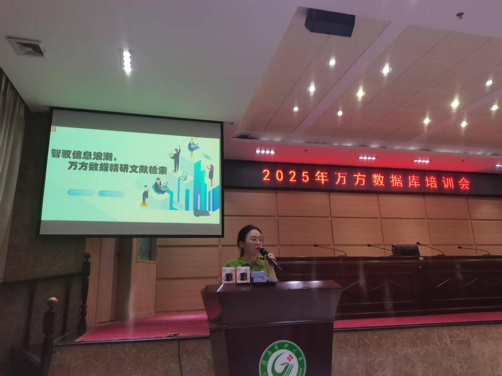 培训中,陈李婧聚焦三大核心模块:万方数据知识服务平台的高效检索技巧、AI学术科研应用工具以及万方医学网的专项使用。她结合实际检索案例进行现场操作演示,深入浅出地讲解了文献检索到利用智能工具辅助科研的全过程。