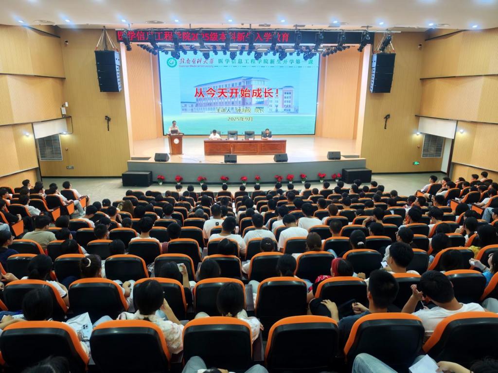 9月8日晚,医学信息工程学院在龙南校区举行2025级本科新生全体大会暨开学第一课。该院院长钟海舰以《从今天开始成长!》为题主讲,该院辅导员、教师代表与360余名本科新生聆听讲课。