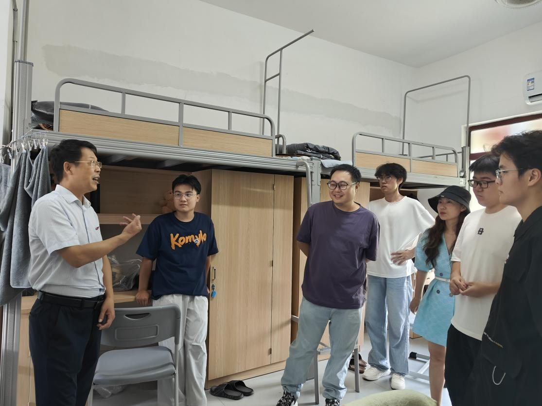 学院领导还带领新生辅导员及班主任一行,第一时间深入走访新生宿舍,与同学及其家长进行热情交流。 领导与老师们细致地询问了新生的入住感受和对校园环境的适应情况,耐心解答了家长们的疑问,并鼓励新生尽快融入大学集体生活。