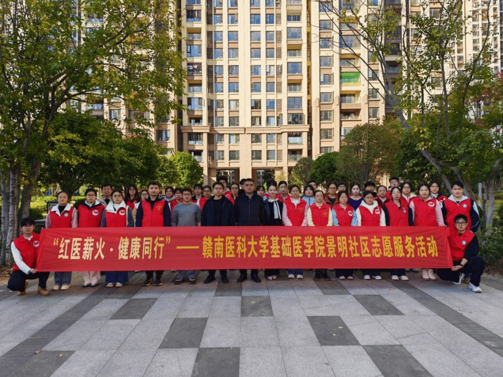 11月21日下午,基础医学院组织研究生党支部、学生第一、二党支部及“生命火炬”公益团队共30余名师生党员、入党积极分子,走进潭东镇景明社区,开展“红医薪火・健康同行——守护生命温度,传递爱心希望”主题公益活动,以专业服务践行红医精神与新时代医学生担当。
