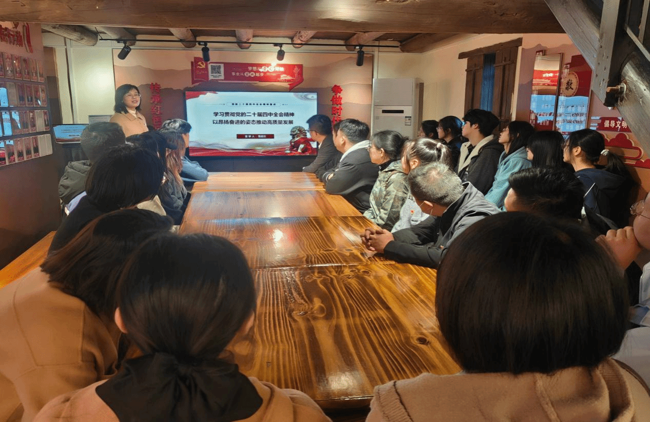 参观结束后,学院党委在郭大力故居举办学习贯彻党的二十届四中全会精神党员集中培训班开班仪式,学院党委书记范启兰以《学习贯彻党的二十届四中全会精神 以昂扬奋进的姿态推动高质量发展》为题做开班第一讲,从党的二十届四中全会的重大意义、“十四五”时期我国发展取得的重大成就、认真贯彻落实全会精神,推动学校高质量发展等方面进行宣讲。