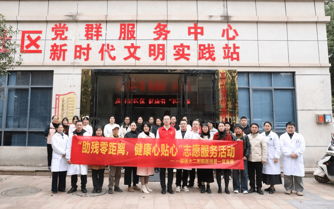 在第34个国际残疾人日来临之际,为深入践行学校“红医魂”党建品牌要求,推动医院“红医领航·医心为民”党建品牌建设走深走实,12月3日,第二临床医学院党委书记钟秋明带领该院医技第一党支部党员和二附院橙乡红医服务队医护人员走进信丰县马鞍山社区,开展“助残零距离,健康心贴心”志愿服务活动,将专业诊疗服务、实用健康科普与暖心关怀精准送达社区居民身边。