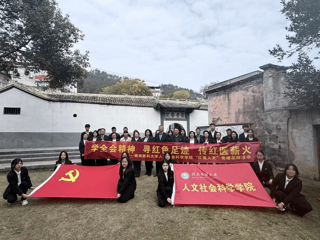 为深入学习贯彻党的二十届四中全会精神,传承红色基因,赓续红医血脉,12月5日,人文社会科学学院组织师生党员赴长汀福音医院旧址,开展“学全会精神 寻红色足迹 传红医薪火”——“红蕴人文”党建品牌主题活动。师生们在红色土地上重温革命历史,在医者初心的传承中凝聚奋进力量。