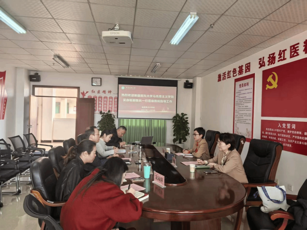 12月8日上午,新疆医科大学马克思主义学院党委委员、副院长吴自聪一行来我校考察交流。我校马克思主义学院党委副书记、院长曾新华,党委委员、副院长田娟及各教研室教师代表参加活动。