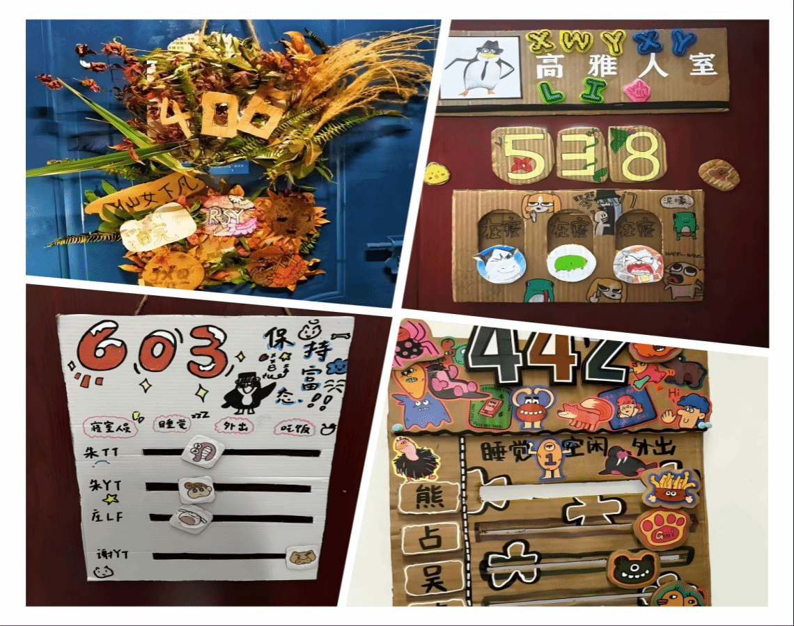 文化节共设寝室微视频大赛、卫生评比与“变废为宝”创意设计三大板块。活动中各寝室精心参与:微视频创作记录活力日常,尽显医学生朝气;卫生评比围绕多指标抽查,培养良好生活习惯;“变废为宝”与门牌设计则激发创意,作品兼具实用性与寝室特色,凝聚集体智慧。
