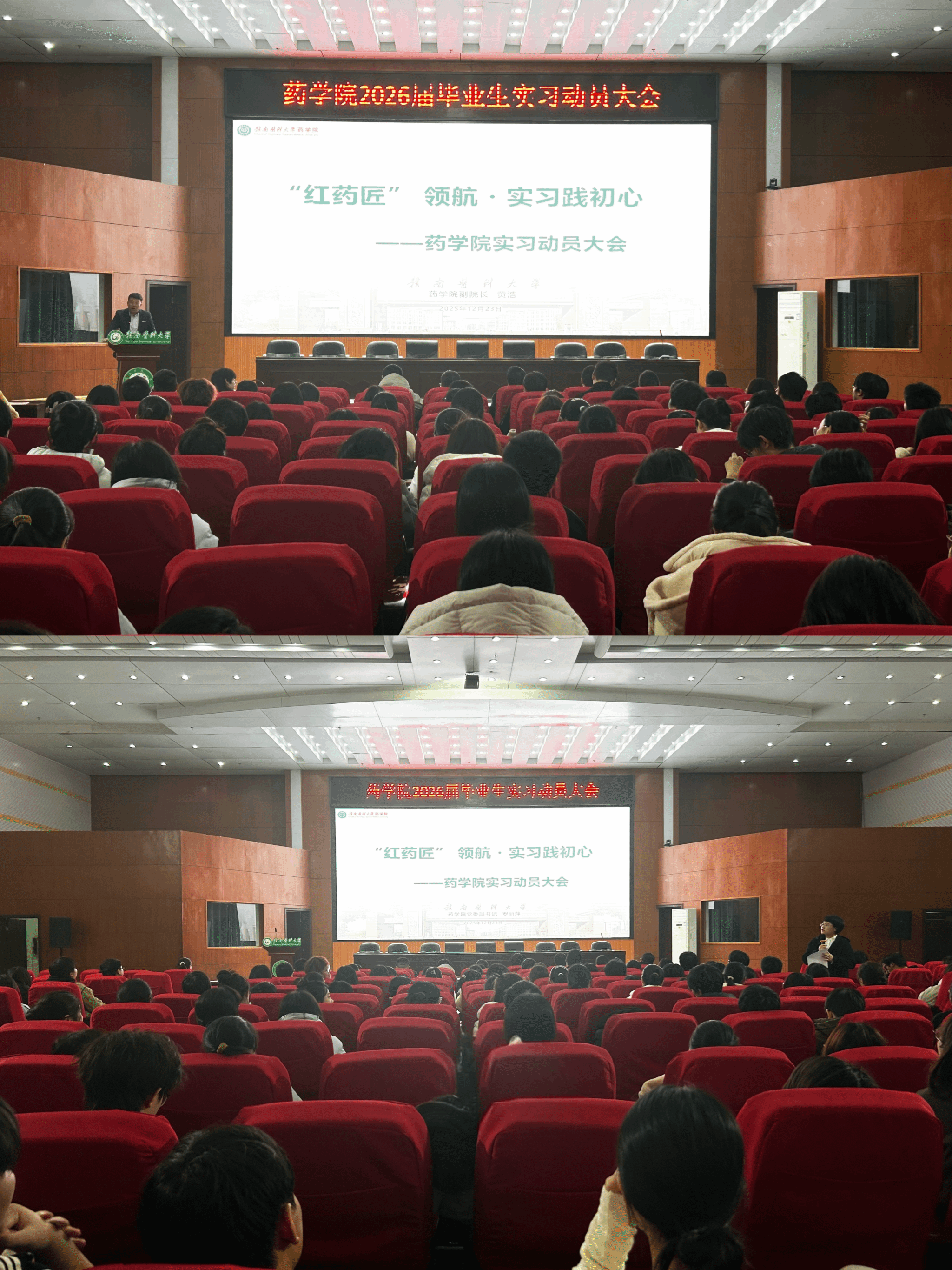 12月23日,药学院召开2026届毕业生实习动员大会。学院党委委员、副院长黄浩,党委副书记罗丽萍以及药学、中药学、制药工程的专业负责人,毕业班班主任、全体辅导员及应届毕业生参会。